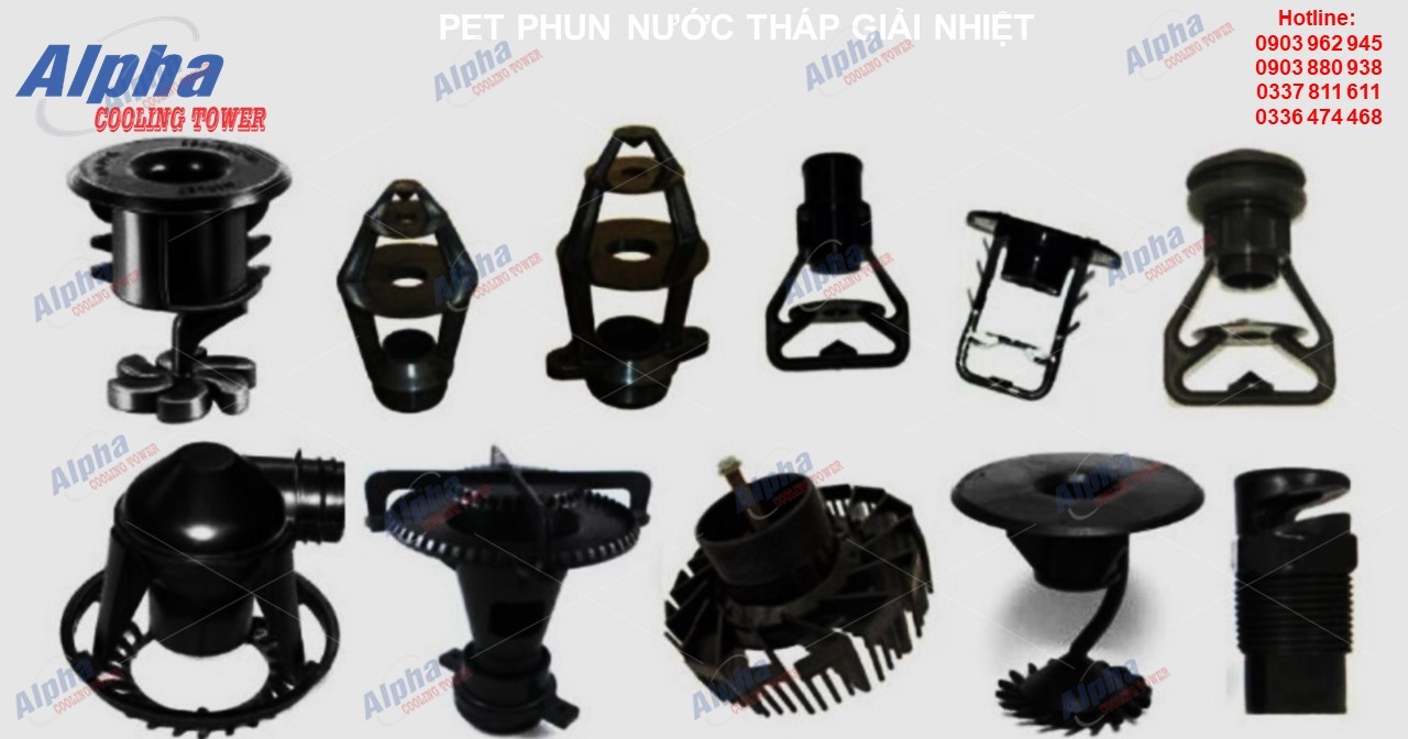 Hiện nay, pet phun nước thường được sử dụng cho tháp giải nhiệt vuông, trong khi đầu phun nước lại phổ biến ở tháp giải nhiệt tròn.