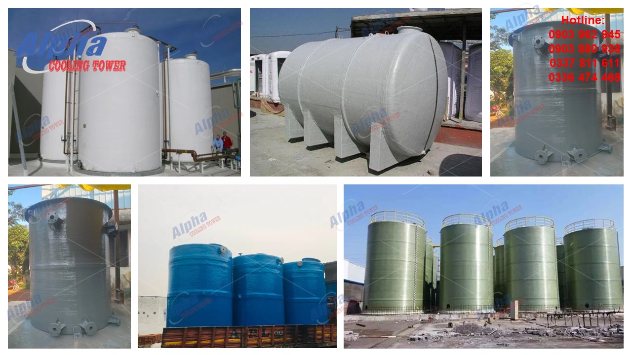 Bồn composite có thể được thiết kế theo yêu cầu riêng – dạng trụ đứng, nằm ngang, vuông hoặc hình trụ tròn – đáp ứng mọi không gian và mục đích sử dụng của doanh nghiệp.