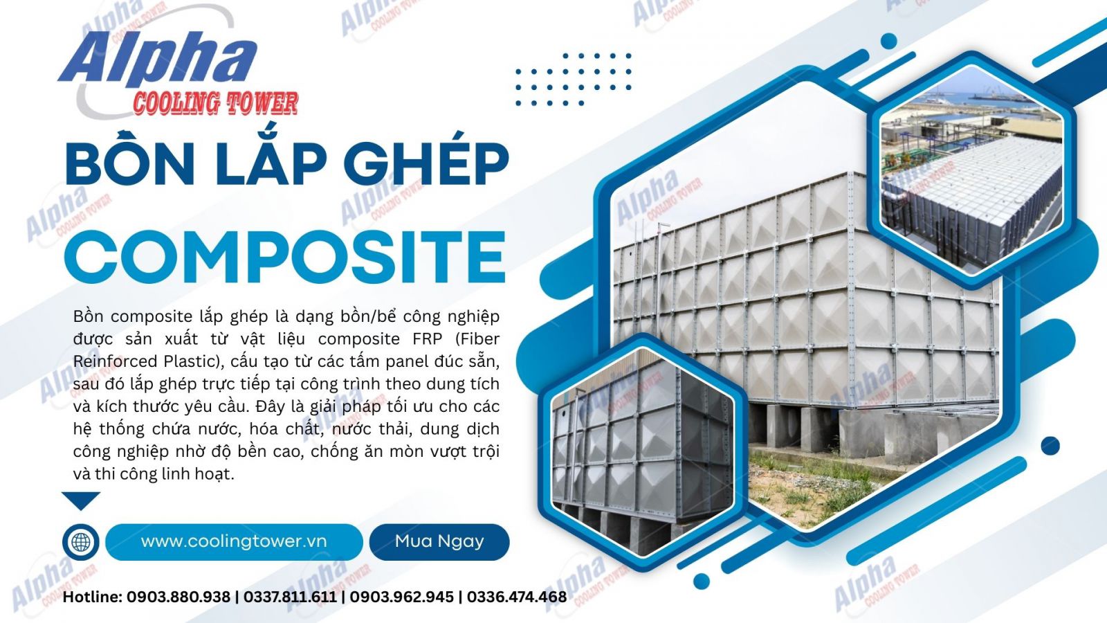 Bồn lắp ghép composite là dạng bồn/bể công nghiệp được chế tạo từ vật liệu composite FRP (Fiber Reinforced Plastic – nhựa gia cường sợi thủy tinh) dưới dạng các tấm panel tiêu chuẩn, sau đó lắp ghép trực tiếp tại công trình.