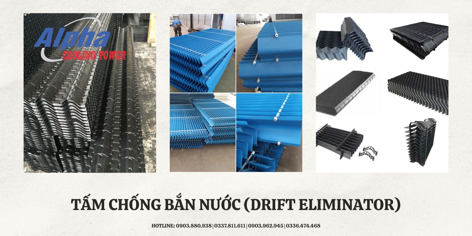 Tấm chống bắn nước (Drift Eliminator) không chỉ giúp tiết kiệm nước, mà còn đóng vai trò quan trọng trong việc bảo vệ môi trường, nâng cao hiệu suất và tuổi thọ tháp giải nhiệt. Đầu tư đúng loại Drift Eliminator là giải pháp kỹ thuật mang lại lợi ích lâu dài cho doanh nghiệp.Công ty TNHH Tháp Giải Nhiệt Công Nghiệp Alpha Việt Nam