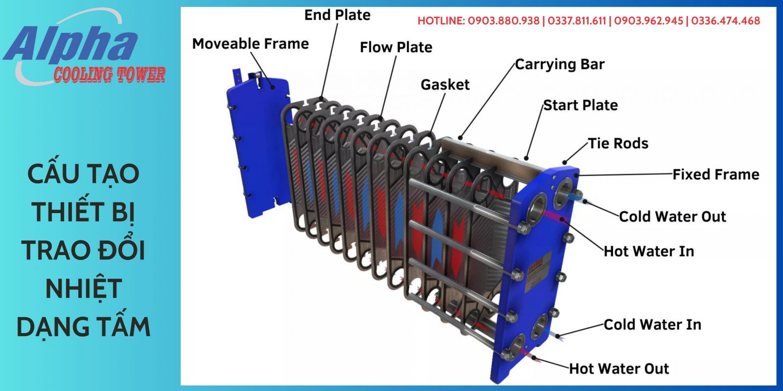 - Hai dòng chất lỏng nóng và lạnh đi xen kẽ qua các tấm