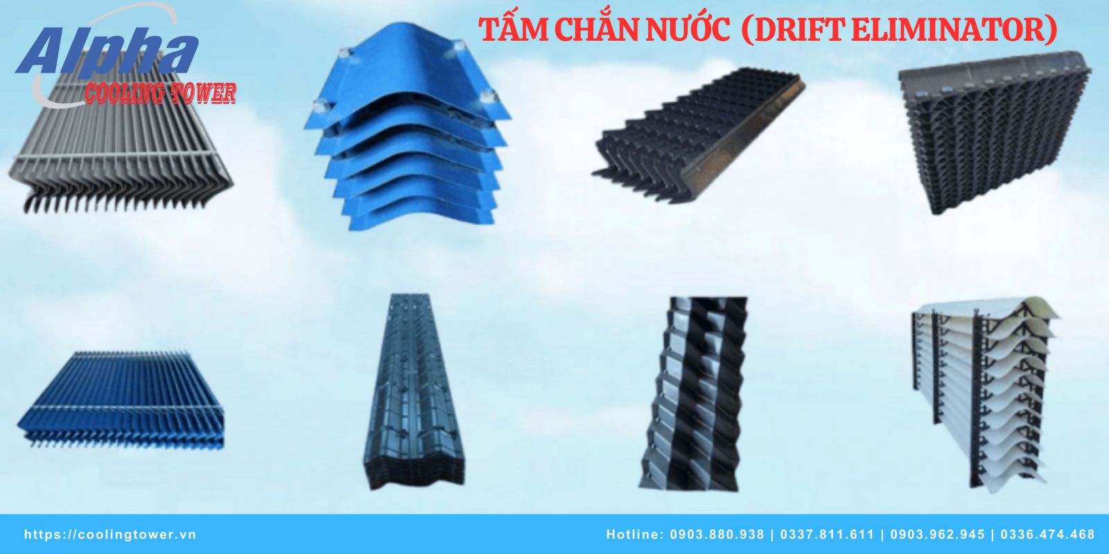 Tấm chắn nước (Drift Eliminator) là bộ phận quan trọng trong tháp giải nhiệt, có chức năng giữ lại các giọt nước nhỏ (drift) bị cuốn theo dòng không khí khi quạt hút hoạt động.